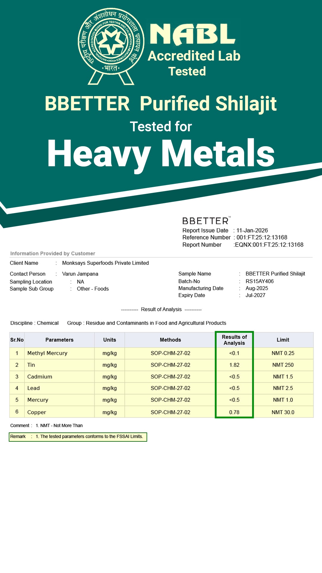 BBETTER Purified Shilajit, crafted with clinically proven PrimaVie®, elevates your energy, endurance, and everyday performance.