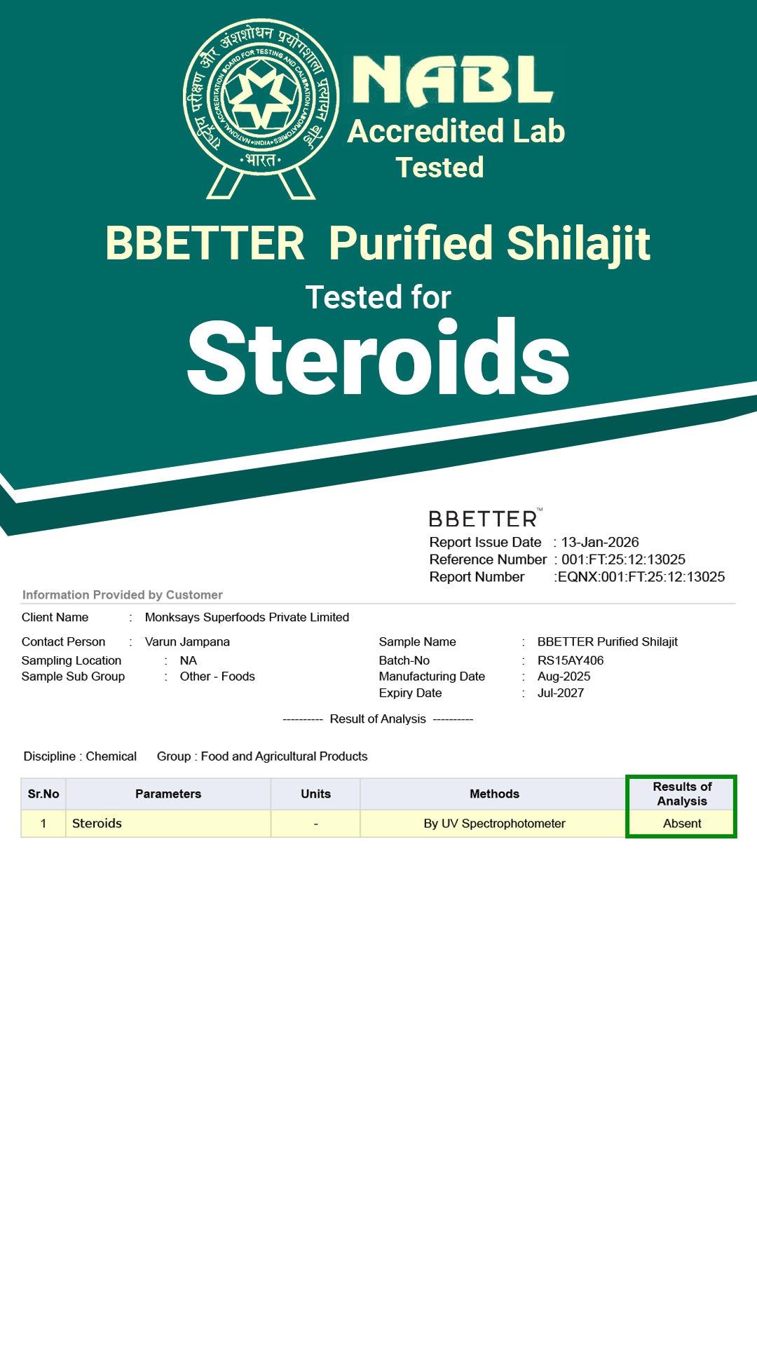 BBETTER Purified Shilajit is made from PrimaVie Shilajit, backed by 8+ clinical studies for energy & vitality